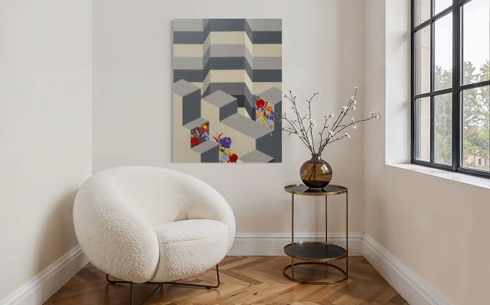 Geometriai formákból alkotott női acr sorozatom egyik darabja. Egyik legkedvesebb témám! Letisztultságával, elegáns színeivel harmóniát csempész otthonodba.