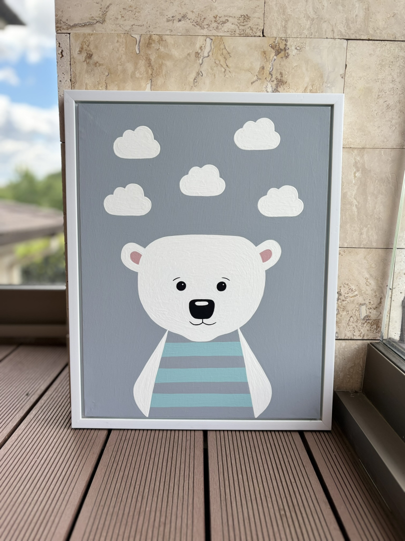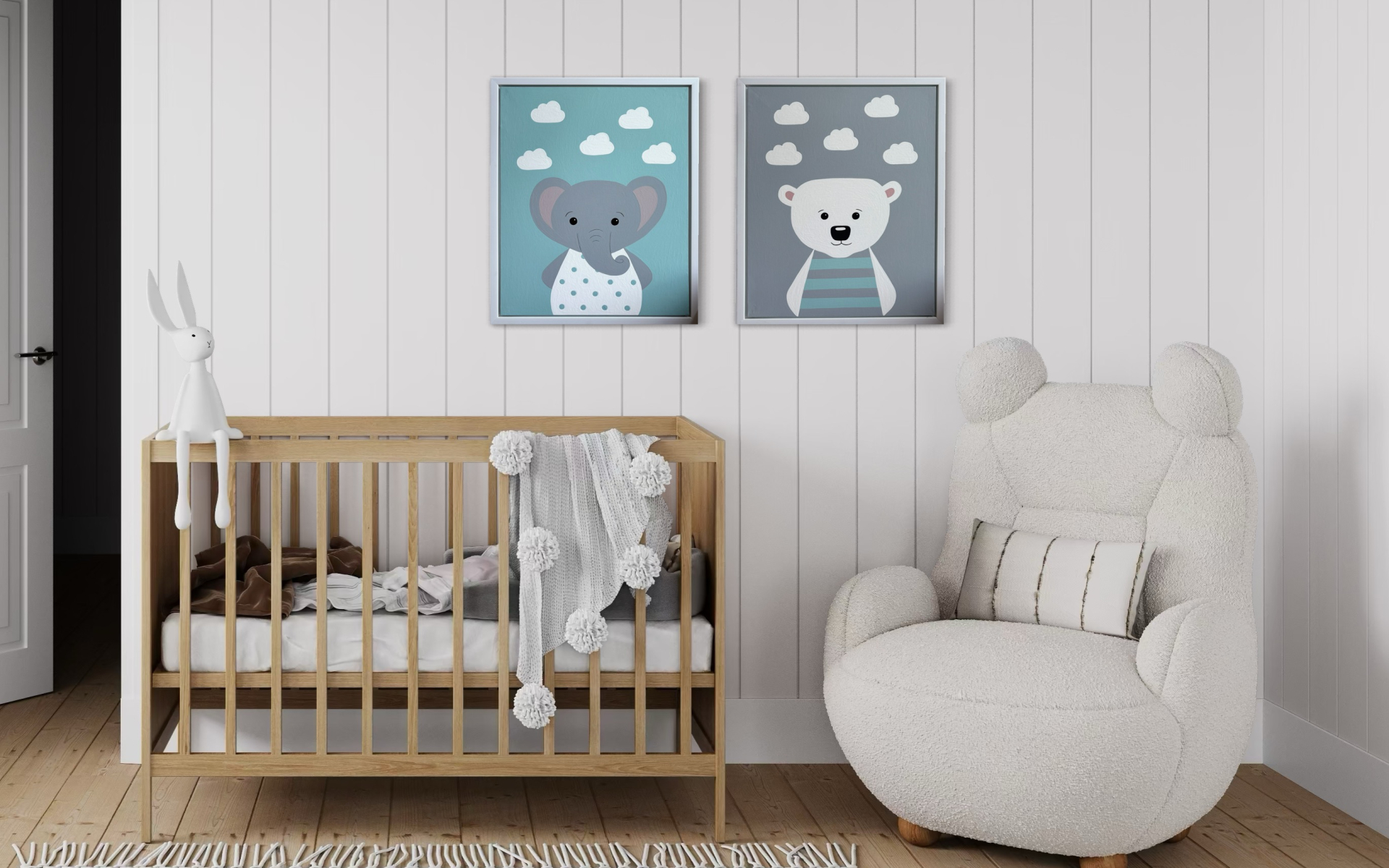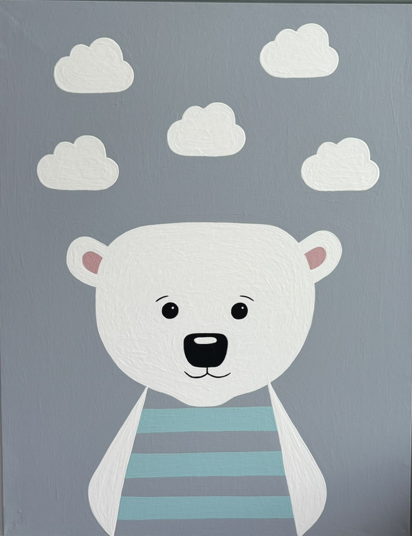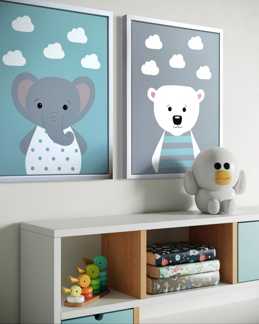 Édesanyává válásom élménye ihlette, minimalista stílusban készült állatfigura festményeimet. Mackó és Elefáni a sorozat első alkotási, melyeket kisfiammal a pocakomban alkottam. Szeretetteljes, meghitt, üde hangulatot ad egy gyermekszobának, vagy akár játszósaroknak, babaszobának. Minden alkotásom tele van érzelemmel, de ezek a gyermekeknek szóló képek csórdultig vannak szeretettel!