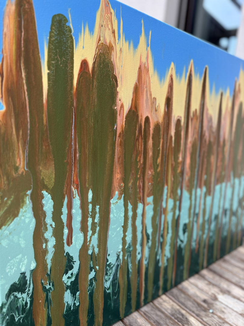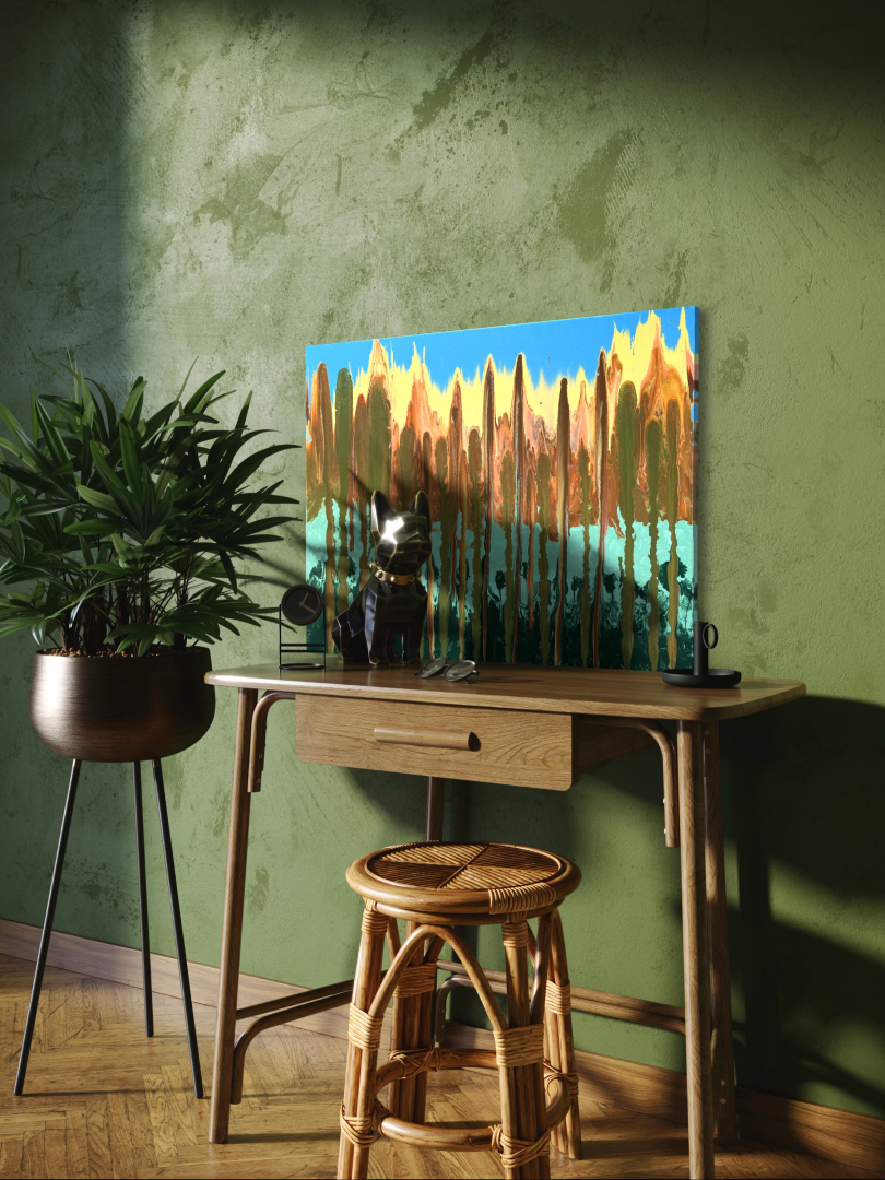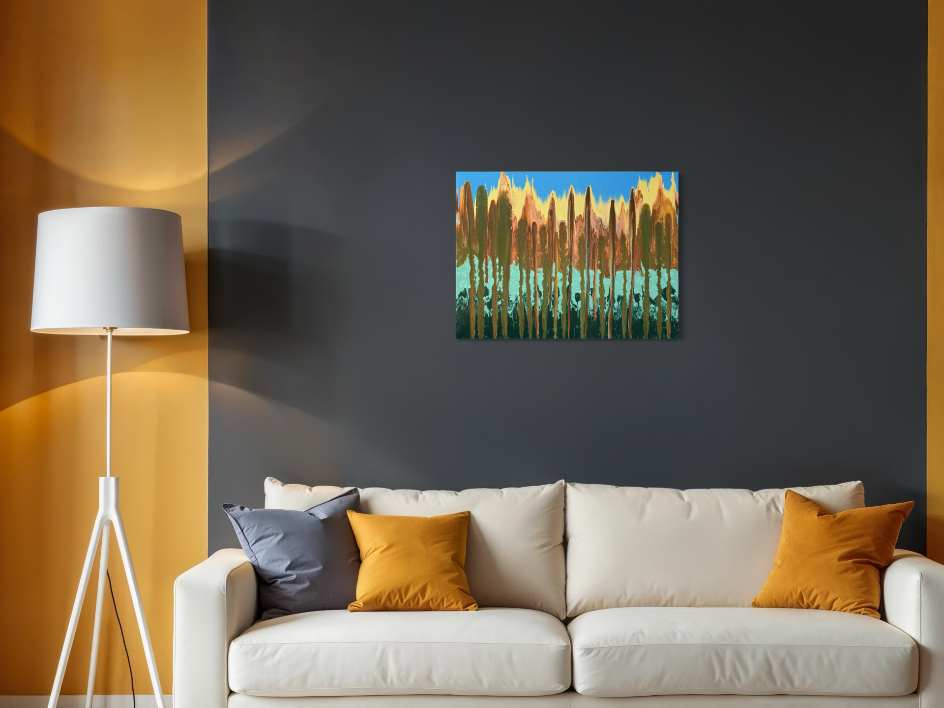 Absztrakt, akril vászonkép 60*80*2 cm, feszített vásznon. Természet ihlette, élettel teli színeivel, pezsgést visz at otthonodba. Oldalán is festett, így keretezés nélkül is jól mutat.
